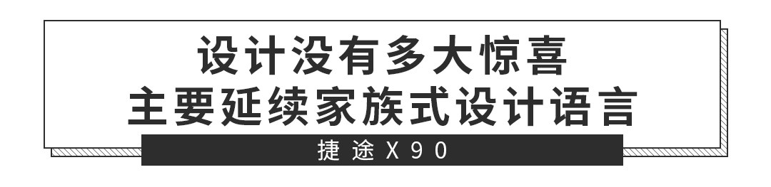 作为捷途的第三款车型,捷途X90毫不意外地采用了家族式的“徽城翘楚”设计理念,六边形的前中网,尺寸不小,利用了贯穿式的设计,连接到两侧的大灯;不规则的灯组轮廓与X70相似,看起来精致度不错。
