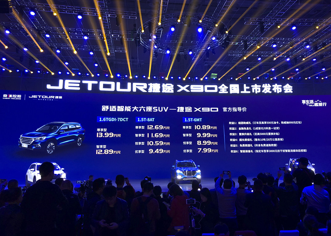 2019年1月13日,捷途X90正式上市,共推出1.5T+6MT/8AT、1.6T+7DCT三种动力组合十款车型,售价区间为7.99-13.99万元;新车定位为舒适智能大六座SUV,有以下特点。