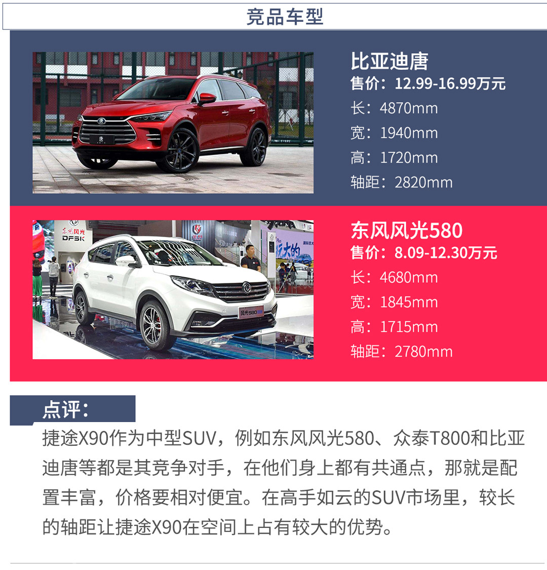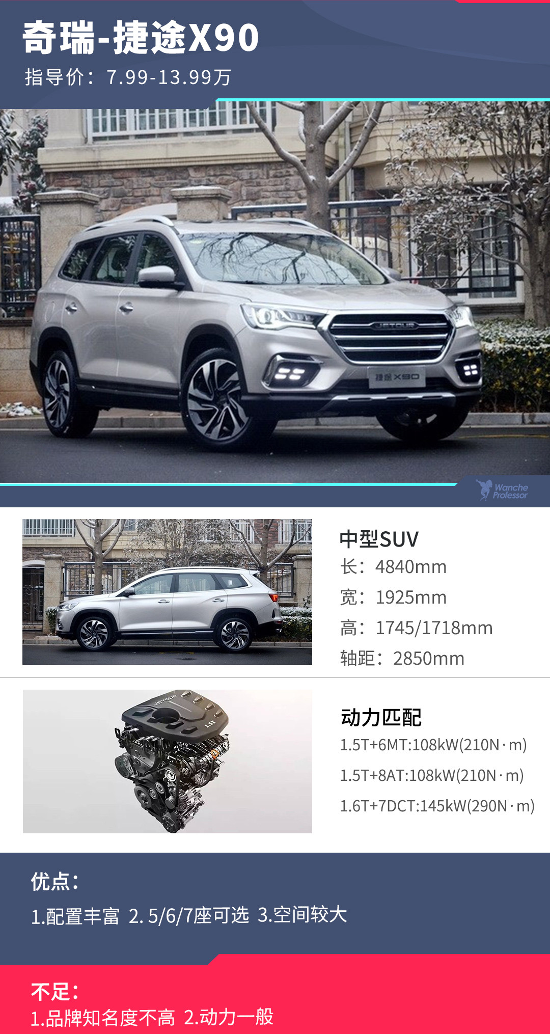自捷途X70推出以来,捷途已经连续4个月销量破万,势头十分迅猛,X90的到来很显然是抢占10万级别的中型SUV市场,值得让捷途X90庆幸的是,完美避开了与霸主丰田汉兰达的竞争。再回到这款车,10万左右的售价可以购买一辆中型SUV,具有5座/6座/7座可选,而且配置还相当的丰富,兼顾钱包的同时,在功能性和实用性上面也有较好的表现,这对于消费者来说无疑是个很友好的消息。当然了,捷途汽车的品牌知名度还有待提高,消费者接受还需要一段时间。