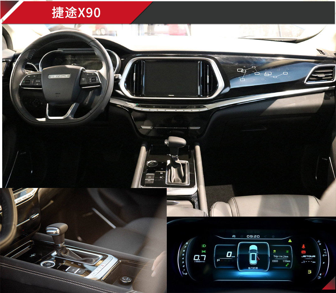 作为一款中型SUV,捷途X90在尺寸上也相当亮眼,长宽高分别为4840*1925*1745mm,轴距为2850mm,加上1980L的后备箱空间,在同级里头属于中上的水准。内饰部分采用环抱式的设计风格,在简约且美观的同时,还玩起了舒适和科技。大面积的皮质包裹带来不错的质感,而精致的缝线则体现出细节做得十分到位。触摸式的空调开关,12.3英寸智能液晶仪表9英寸超清中控大屏与可选装10英寸流媒体后视镜,集成资讯娱乐、安全防护、交通驾驶、远程控制、智能语音等多项功能,让内饰充足十足的科技感。