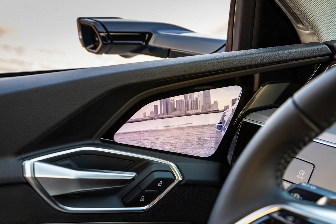 直到最近,在奥迪e-tron上面终于看到了量产,其原理就是把反光镜替换成摄像头,然后再A柱的位置加一个显示屏。