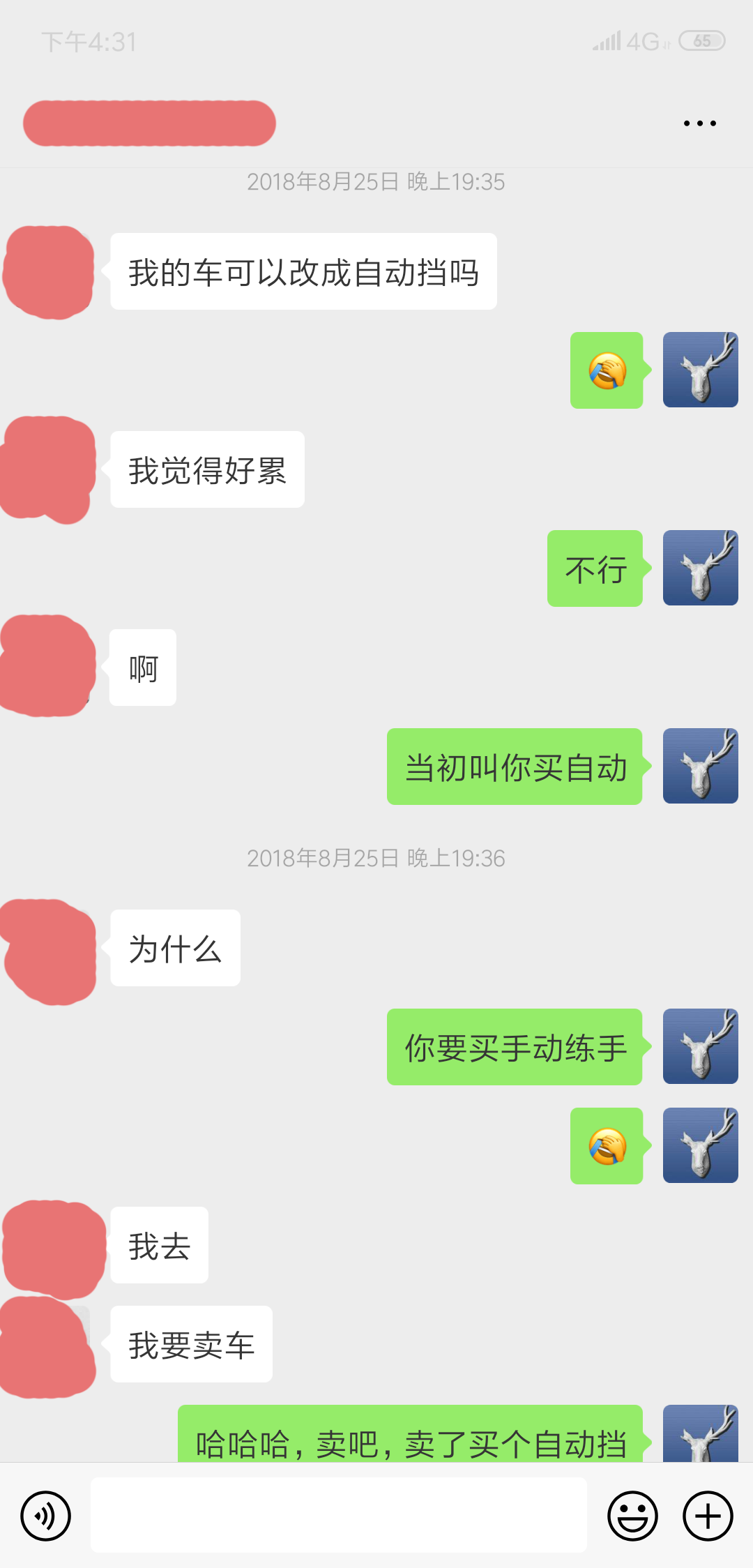 此后,这位同学就沉浸在无奈后悔与纠结中,手动不好开,换车吧又舍不得钱......
