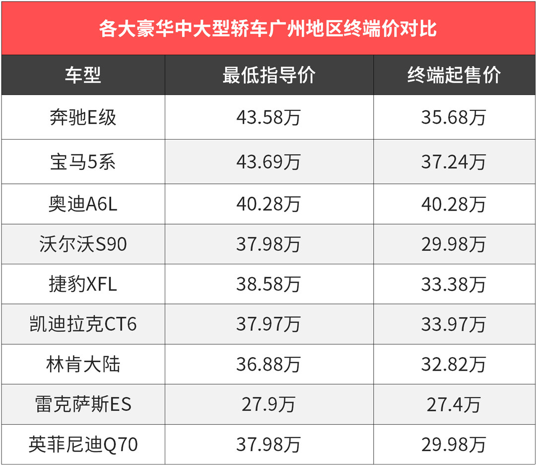 最初从同事口中听到沃尔沃S90的终端起售价已经到了29万左右时,教授觉得十分惊讶,然而在关注广州地区的市场行情时,发现确实有这么大的优惠,不止是S90,在广州地区目前凯迪拉克CT6和捷豹XFL的起售价均在33万左右,而凯迪拉克XTS更是低至26万起。