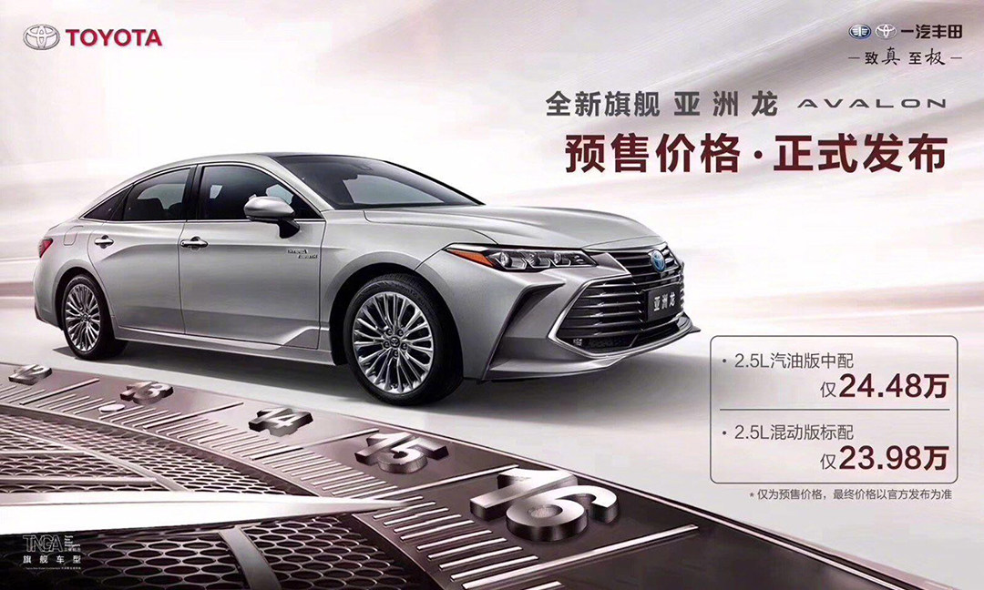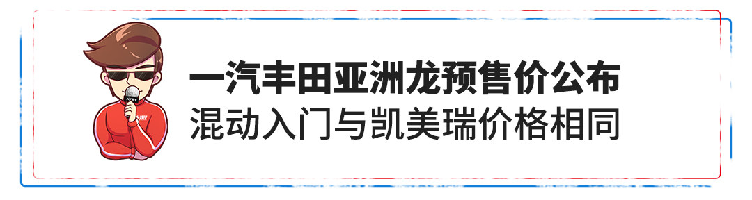 日前一汽丰田官方公布了#亚洲龙#的正式预售价格:2.5L自然吸气动力中配版本售价24.48万,2.5L混动版本标配(入门配置)售价为23.98万元,与先前国内媒体公布的2.5L自吸高配版24.48万元的疑似价格有一定的出入,但这个价格无疑更具真实性和说服力。此售价可谓是让亚洲龙的意向消费群体吃了一颗“定心丸”,混动版本的入门价格与广汽丰田凯美瑞一致,作为买车“以大为美”的中国消费者,尺寸比凯美瑞更大的亚洲龙在青睐大车的消费者眼里无疑更收欢迎。当然作为消费者而言,我们也更期待亚洲龙在3月份正式上市时能给予人们更多的惊喜。