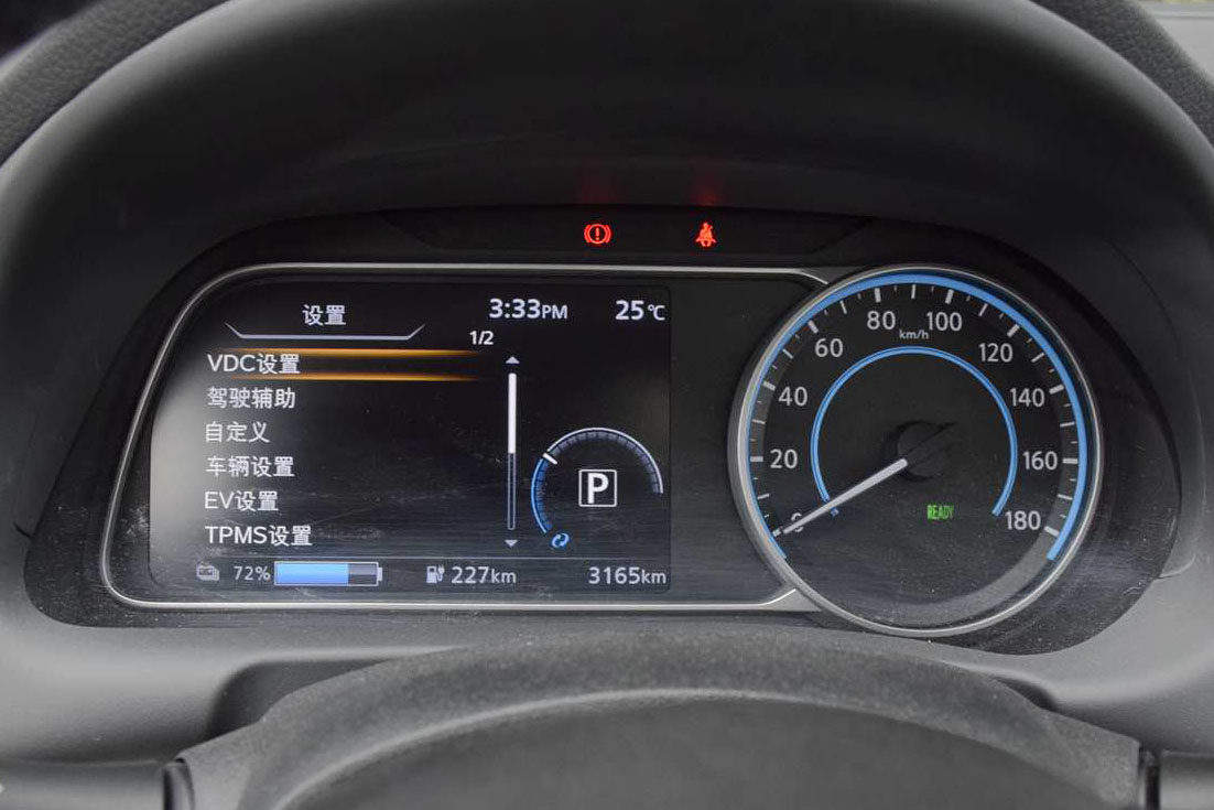 来到内饰上,电动版轩逸还是沿用了聆风的方向盘,仪表,以及换挡机构。中控方面可以看成上半部是聆风的,下半部则是燃油版轩逸的,虽然这样听起来好像有点随意,但是出来的效果还是不错,毕竟聆风在全球的销量也是十分不错的。不过内饰上最大的问题在于座椅的舒适性上,纯电版因为电池摆放的原因,所以整个车架都垫高了不少,整个乘坐空间特别头部空间相对于燃油版少了很多。作为一个有着身高181cm,体重110Kg的胖子,在满足了腿部的空间之后,手就只能笔直的拉着方向盘,所以这些方向盘不能前后的车型可以说都在耍流氓的减配。虽然两台轩逸的方向盘都不能前后调节,抛开这个先不说,其他舒适性上还是燃油版比纯电版要舒服。