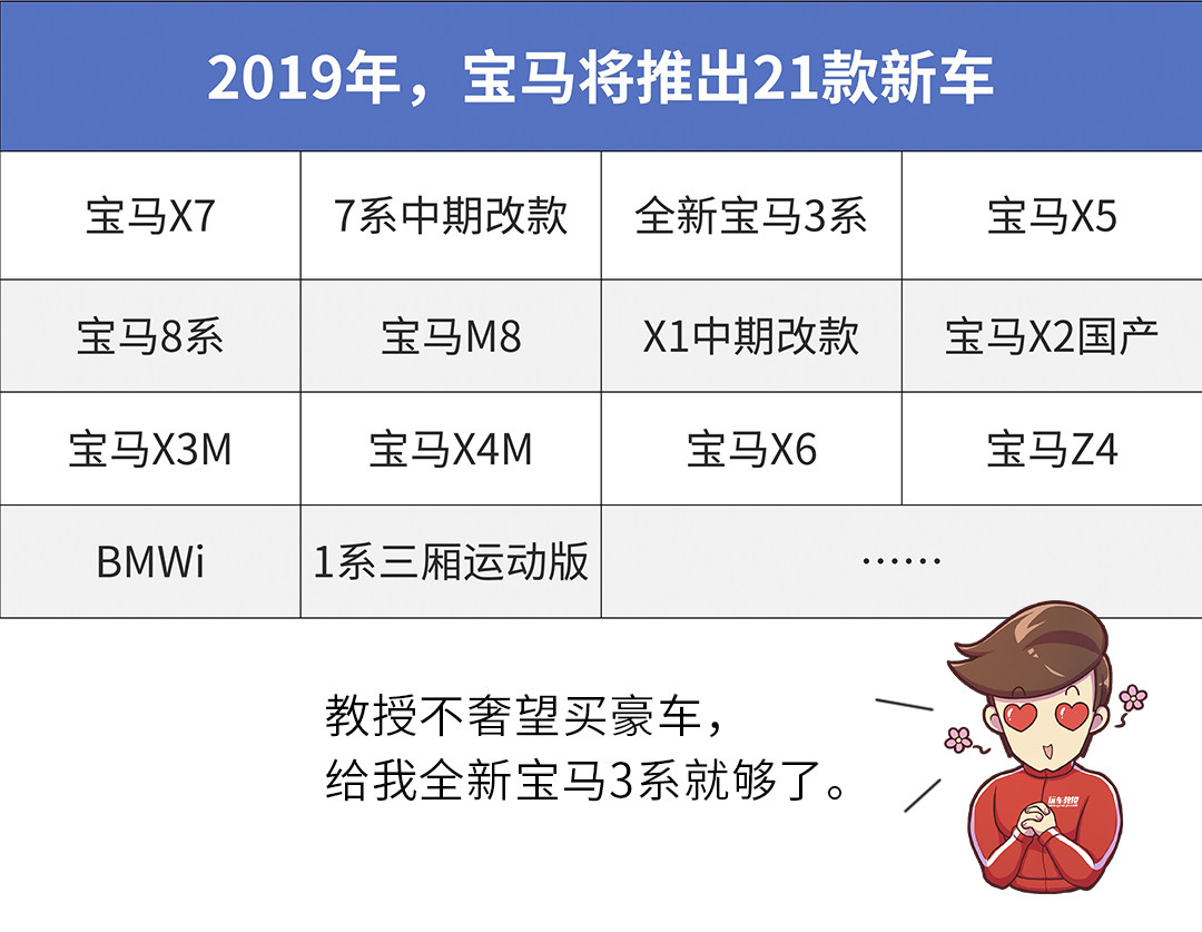 面对如此尊贵奢华的车型,多数普通老百姓来说,更多的还是用欣赏的眼光去看待。但没关系,宝马对中国市场已经越来越重视了,2019年将一共推出21款新车。是的!足足21款。
