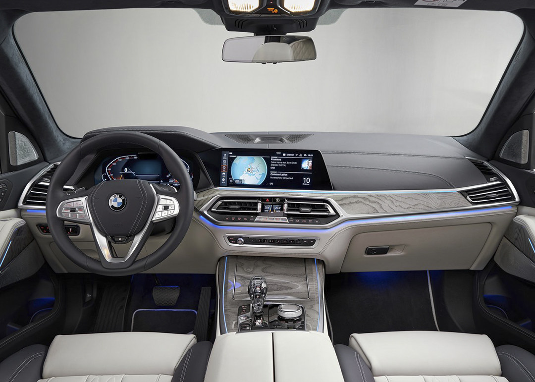 宝马X7的内饰风格与概念版车型基本保持一致,遵循宝马“以驾驶员为中心”的原则。用料方面,X7用上大量真皮、木纹饰板等高级材料,以提升档次感。同时全新设计的水晶档把也十分引人注目,进一步提升内饰的豪华感。至于全液晶仪表与12.3英寸中控液晶屏的搭载也是车内的一大亮点,凸显出十足的科技感。