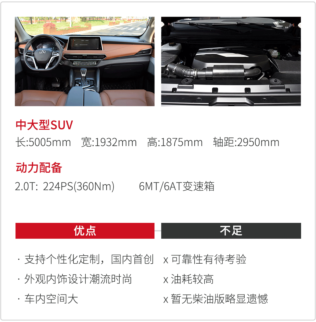 上汽大通可以说是最值得推荐的自主品牌硬派SUV,这款车最大的亮点就在于支持C2B个性化定制,简单说,就是购车时消费者可以根据自己的预算和喜好,实现在线上或手机APP上为自己的爱车选择好包括外观、内饰、动力总成、驱动形式在内的众多配置组合,喜欢的就要,不喜欢的剔除,丰俭由人,最后在线下提到属于自己的独一无二的爱车,享受美国式购车乐趣。在这个亮点面前,D90高大威猛的车身以及时尚前卫的外观设计甚至都有些“相形见绌”了。