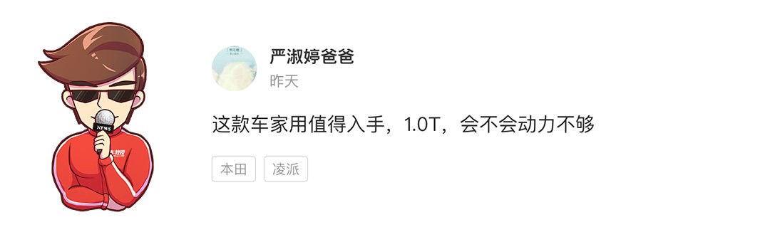 如果是与自家的1.8L发动机相比新换装的1.0T发动机在动力性能要优胜之。与卡罗拉的1.2T相当;比轩逸的1.6L要出色。所以如果从家用的角度出发这具1.0T的动力是满足“够用”二字的。然而这个1.0T发动机的最大争议点是仅采用三个气缸;虽然身为发动机大师,本田为这具三缸发动机做了很多优化措施去消除噪音与抖动,而在绝大部分工况下都是抑制得不错的,但是在起步阶段或是低转速区间仍可感受到明显的抖动,这一点要比通用新研发的三缸发动机稍显逊色。如果抛开发动机不谈凌派无疑是一款能给予好评的家用车,换代后车身尺寸全面升级,轴距来到了2730毫米再加上本田空间魔木师的本领,乘坐空间已是中型轿车水准并且首创了双层后排中央扶手,上层结构向下放倒正好与前排扶手紧密相连,可形成一体化的桌板。同时在价格下调的基础上额外新增了许多配置。如果对三缸不反感凌派值得入手。