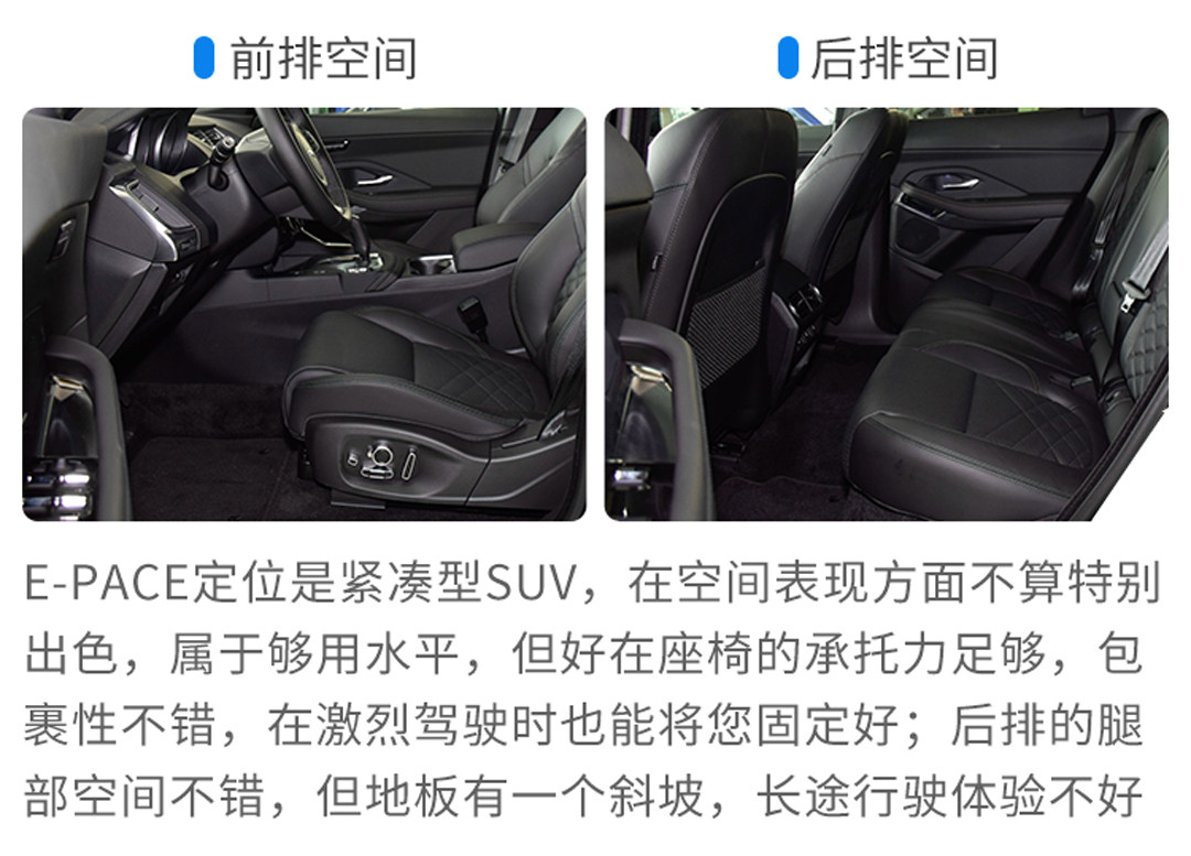 F-PACE虽然定位比Q2L更高,但紧凑型的身板下,机械结构和造型对内部空间侵占略明显,所以其车内空间表现只能说合格。