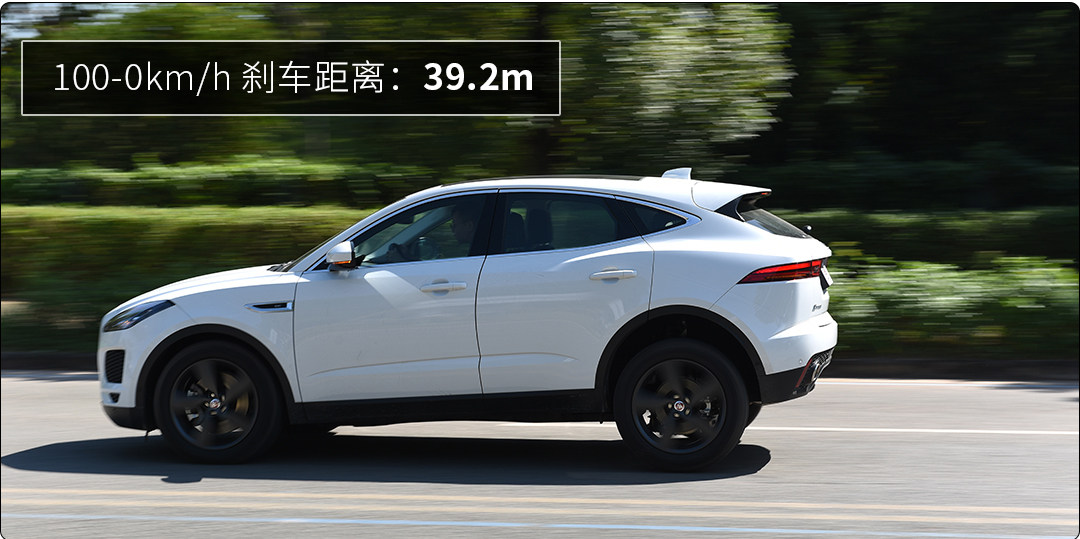 但由于变速器响应效率、车身自重等因素,教授实测E-PACE的百公里加速成绩竟与Q2L一样为8.8s,制动距离则到了39.2m,看来排量和动力储备并不是评判性能的唯一指标,还需要看调校。