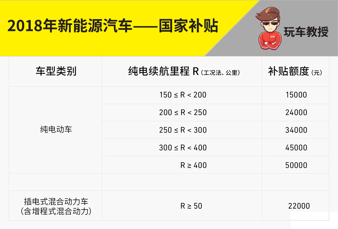 说完新能源车的类型,最后再稍微补充下有关目前新能源车的购车补贴的内容,现行的补贴为2018年2月调整过后的补贴。不过,据相关的媒体报道,在今年2019年,新能源补贴将会在原有的基础上面再度下降30%,而到了2020年后,新能源汽车补贴将彻底地退出。