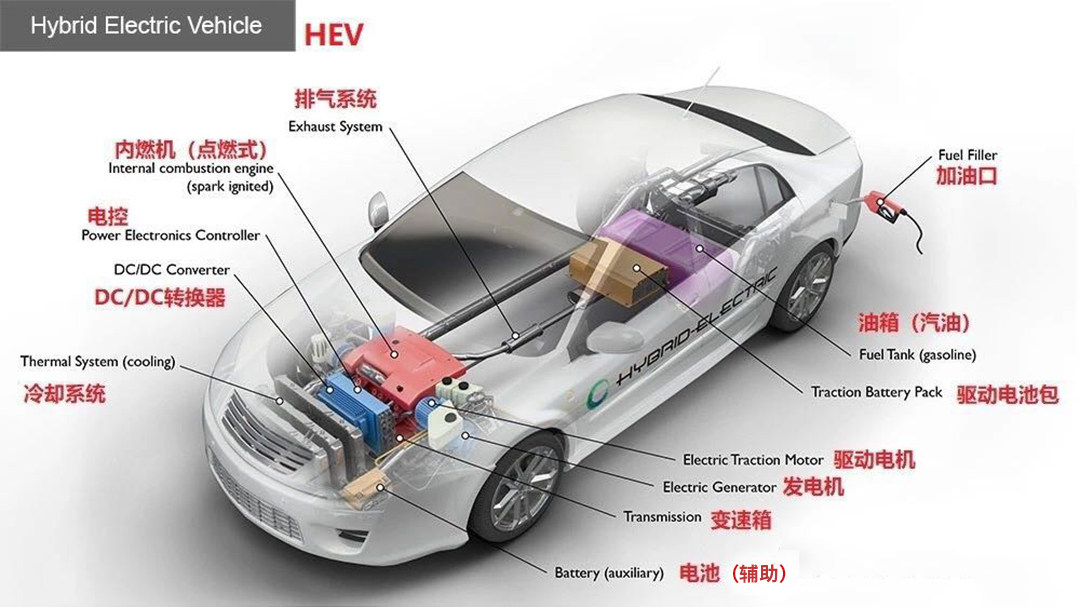HEV是”Hybrid Electric Vehicle”的简称,中文译为混合动力,也就是我们常说的油电混合动力。简单来说,它就是传统内燃机与电动机相互配合,混合驱动给车辆提供行驶时所需的动力,与此同时,减少车辆动力系统对化石燃料的依赖, 提高燃油经济性。但严格意义上来说,油电混合其实并不属于新能源车,它最多算是节能车。因此,它并不享有国家推出的新能源车补贴政策。