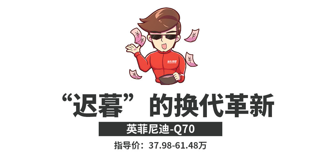 已经在市场上耕耘多年的它,如果说之前V6发动机还有点噱头的话,那现在来看的话,这点噱头也已经丢失了。出于排放标准或是成本等因素,2019款的Q70已经没有V6版本发动机,取而代之的则是Q50L的 2.0T发动机,也就是奔驰那型号为M274的高功率发动机。就连之前的四年十万公里免费保养政策也缩了水,这代的产品力已经到底,只能是官降之后,又保持着大优惠幅度的销售政策。