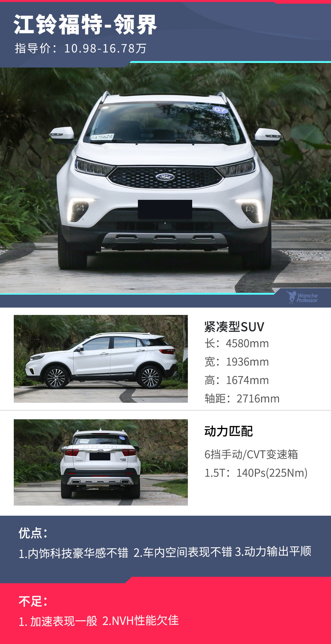 文章开头我们说过领界的定价很吸引人,而且考虑到作为江铃福特第一款进攻家用SUV市场的产品,如果想要争夺市场,在定价的基础上再放出可观的优惠幅度,那它的竞争力将会再一次提升。