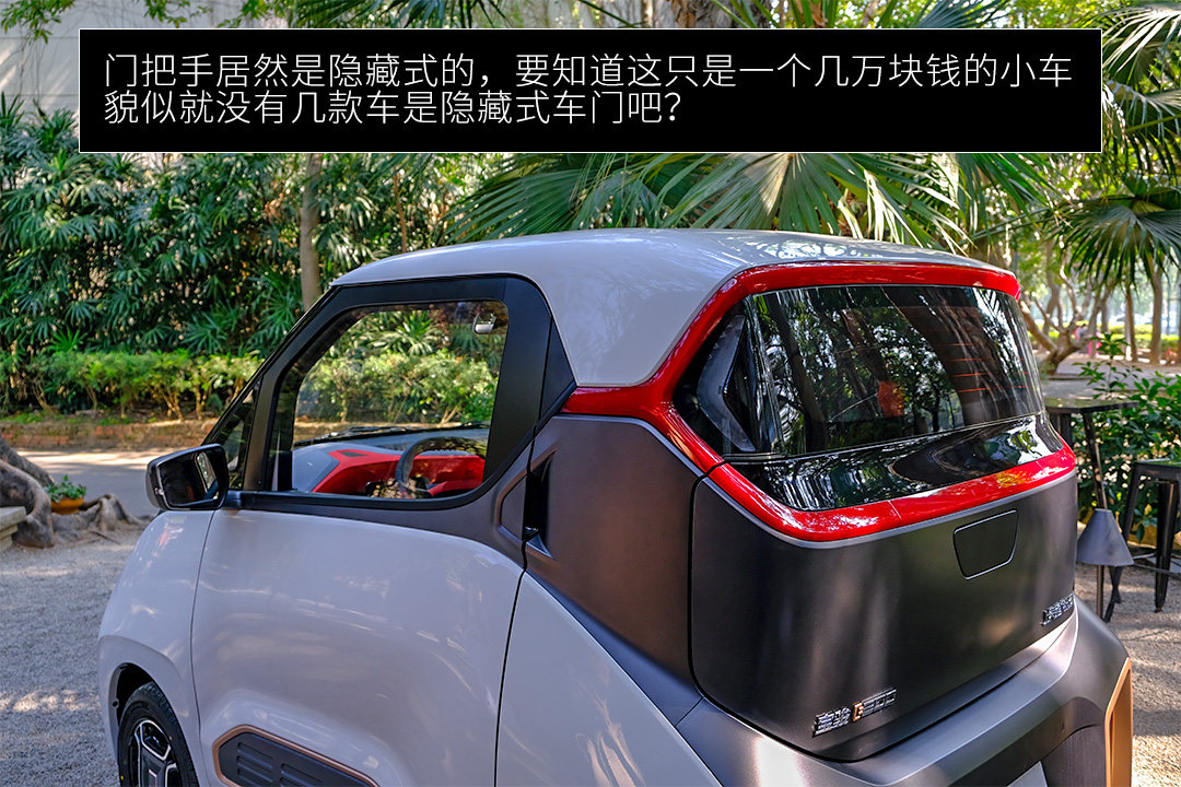 然后围着它转,你会发现它全身都是可以探索的惊喜,门把手居然是隐藏式的,要知道这只是一个几万块钱的小车,貌似就没有几款车是隐藏式车门吧?