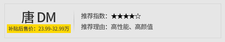 相信绝大部分人买唐DM的车主,因为那块绿牌去买它的人是只有极少数的,被唐DM吸引的,绝对是它的性能和颜值,性能从两年前就已经是块响当当的招牌了,4.9秒百公里加速,让唐DM一度成为风云人物。