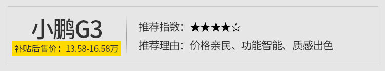 除了智能表现以外,G3的质感营造的是挺出色的,不管是内饰氛围还是驾驶氛围,内饰用料能摸到的都是皮革包裹,手感很细腻,用料是到位的,完全脱离了其他电动车的廉价塑料感,而且布局简洁;另外这个全景式前挡风玻璃是绝大部分车型上没有的;驾驶氛围方面,底盘的厚重质感是G3的做得很到位的,所以教授觉得仅凭智能、质感这两点,就足以成为你选择G3的理由。