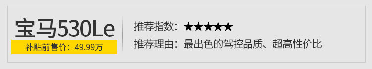 超高性价比体现在它的定价,50万不到的售价,要知道530Li就已经接近48万,落地就奔50去了,但530Le省去了4万购置税,还省去了3-8万的拍牌费用(除非你是光上深摇到号的幸运观众);所以其实插混530Le和燃油530Li的价格其实是差不多的,有时候反而530Le更高性价比,这也造就530Le去年能获得一万多销量。