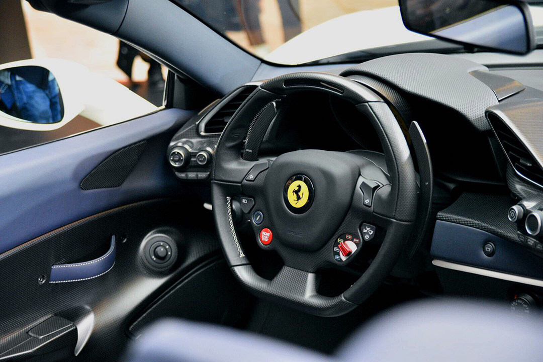 其基本采用了488上的经典设计,长狭条的大灯、修长带有起伏的车身线条,以及满满包裹20英寸轮毂的巨大轮拱,又或是遍布车身四周的空气套件,教授实在不知道怎样用文字去表达它勾人心灵般的美。