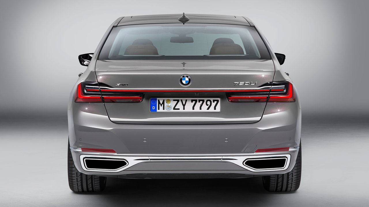 来到新款7系的尾部,感觉并没有前脸变化那么大,但是仔细观察后,会发现车尾的变化使得整辆车更加的年轻、运动。首先是尾灯组上,整体设计呼应了前大灯组,更加平直的设计风格,也运用了时下流行的贯穿式尾灯的设计。在细节上,尾灯组采用了新的内部设计,也运用了立体的元素,整个尾灯看起来十分的精致。