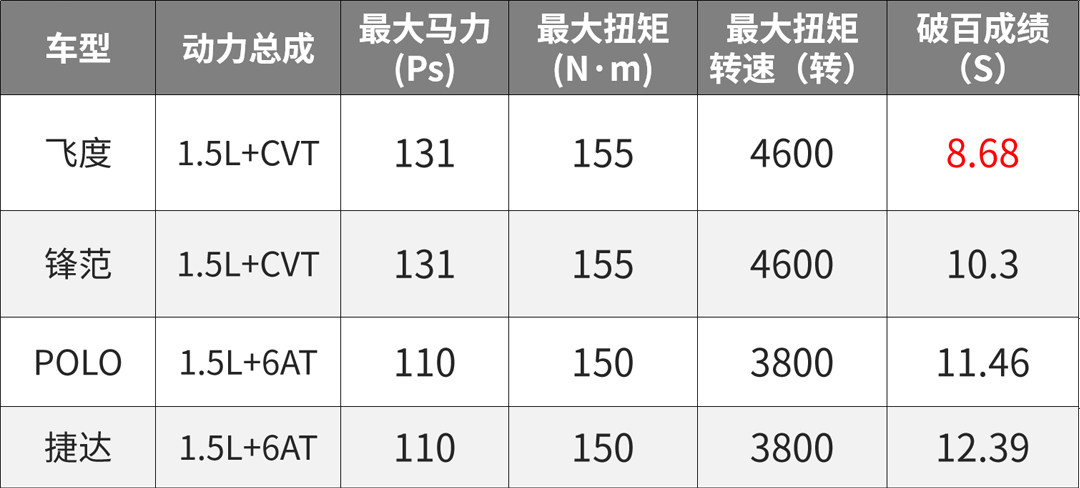 另外需要说明的是大众Polo的整备质量是1070-1115kg,而本田飞度的整备质量是1058-1110kg,可见两车的重量属一个等级,所以那些人说的日系车很轻所以加速快的理论并不成立!
