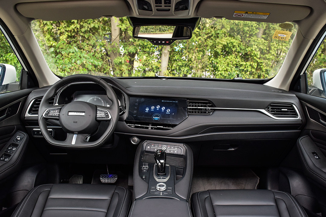 哈弗H7的内饰采用环抱式设计,并且大面积采用皮革进行包裹,饰板的装配也比较紧致,表现值得认可。