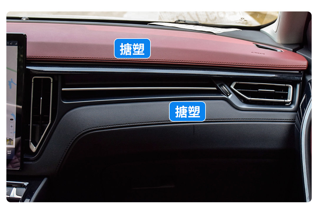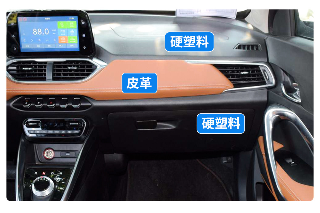 不过宝骏510内饰的表现倒是值得点赞,即便身价不高,中控台用料也大多都是硬塑料,但做工不错,而且部分饰板还采用了皮革进行包裹,档次感瞬间提升了不少。
