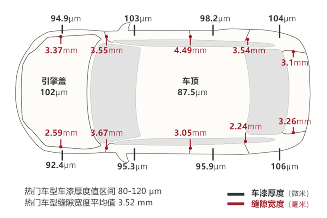 既然要担当重要角色,在品质方面决不能马虎。经过一番检测对比,哈弗F7的漆面厚度以及平整度都比较不错,车身钣金件之间缝隙也比较均匀,但是缝隙普遍偏大,对噪音抑制能力方面带来一定的影响。