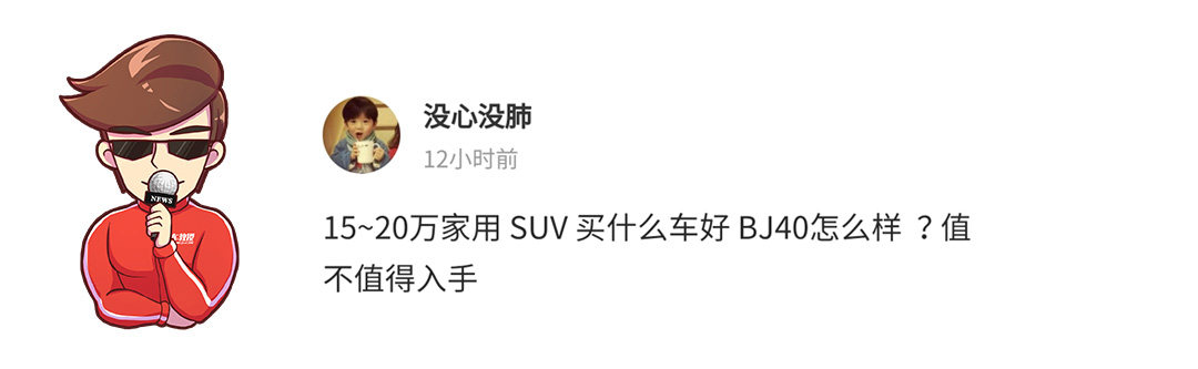 不得不说BJ40确实吸引了不少有追求,不甘平凡的年轻消费者。超级硬派的外观设计,可拆卸的顶棚(全景天窗算什么),时尚高级的内饰。特别是最近上市的城市猎人版,对隔音和油耗做了不少优化,在市区通勤舒适许多。其次到野外做一些轻度的越野,也是没有压力的。可以说BJ40这款车的体验确实超出了它的售价,但后期用车成本和维护以及保值率,可能又是一个问题。15-20万的家用SUV,比较推荐日产奇骏和本田CRV,可以了解一下,相对比较省心的车型。
