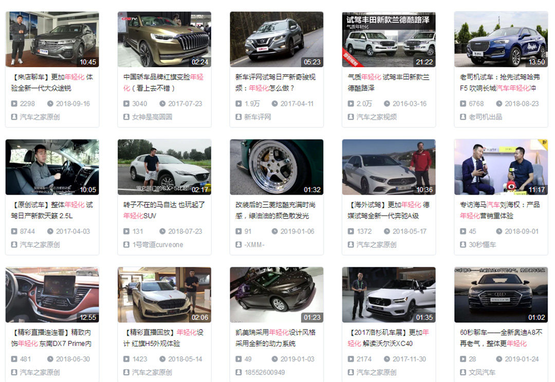 教授近期为一篇文章收集素材,突然发现,以“品牌年轻化”为关键词出来的基本上都是汽车品牌?这就有点意思了,都是“轮子+沙发”为何大家都喜欢这样的品牌逻辑?大家可以做个测试,到bilibili和youku一些视频网站上去搜索“品牌年轻化”,出来的结果80%与汽车有关。那是不是可以说:一款“不年轻”的车,就是不值钱的?