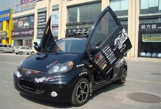 别看比亚迪F0只有几万块,但改装从来就不分贵贱,因为限牌的原因,F0在一线城市能见度越来越低,但是只要见到一辆,多少都有些改装的迹象。F0排量低大家都知道,但是车主最爱改排气,轰着1.0L发动机排出的废气招摇过街,也是一种态度!另外,F0改剪刀门和巨型尾翼的案例并不少见,绝对亮瞎眼的节奏。