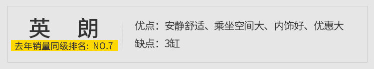 英朗在更换3缸前是朗逸、轩逸最大的对手。乘坐空间大、舒适安静、内饰相对高级是英朗一贯的优点,而且现在还有优惠大的优点。缺点就只有3缸这一点了,看你能不能接受吧。