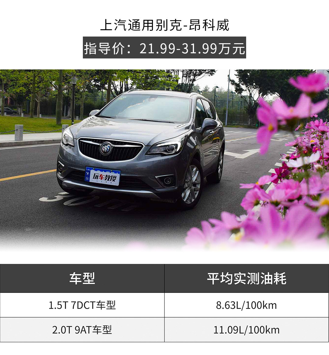 昂科威在合资中型SUV里算是卖得挺不错的,销量经常排到前三名。但是油耗表现一般也是出了名的。官方给出的综合油耗:1.5T车型仅6.6L/100km,2.0T车型油耗为8.8L/100km,可实际油耗要比这要高,1.5T车型大概9个油左右,2.0T车型也11、12个油。但这稍微比同级别车型高一点的油耗并不影响它的受欢迎程度,因为它样子够霸气、动力也充足,再加上终端优惠不小,所以不少消费者还是乐意选择它的。