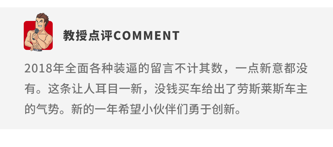 大多数人的评论主要是为了咨询某款车的好坏,在这里就不一一放出来了。“神评论”,自然是与众不同的,上榜的自觉发红包给教授。新的一年期待大家有更精彩的评论,大家相互交流,一起成长,祝大家除夕快乐。