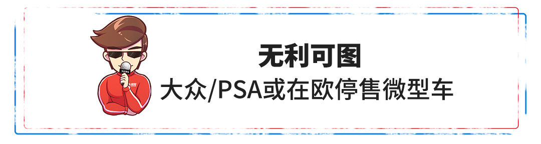 近日,海外有相关报道,由于相关排放法规日益严以致需要更多的技术投入,导致微型车市场利润正在减少,大众汽车集团和PSA集团或将在欧洲市场停售微型车。严苛的排放法规导致微型车的成本以及售价的上升,让原本售价并不高的微型车失去了原有的价格优势,相信未来纯电动微型车将大概率成为微型车市场的主力。