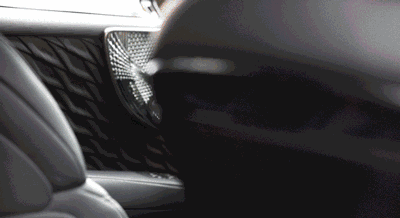 车内不同光线的变化,使得切子也有不同的颜色和风格,这一点与日本匠人精神相当契合。此外,还有命名为“鹤羽折布”的材料,经由娴熟匠人之手,将一整张布层层折叠而成,咋看上去每一片的大小近似相同,摸起来既有顺滑手感之余还有立体的花纹,无论是观感还是触感都非常出色。