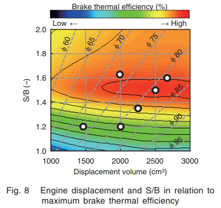 行程缸径比1.5也不是随便想出来的,它是从燃烧、泵气损失、机械损失等方面权衡后才最终确定的。