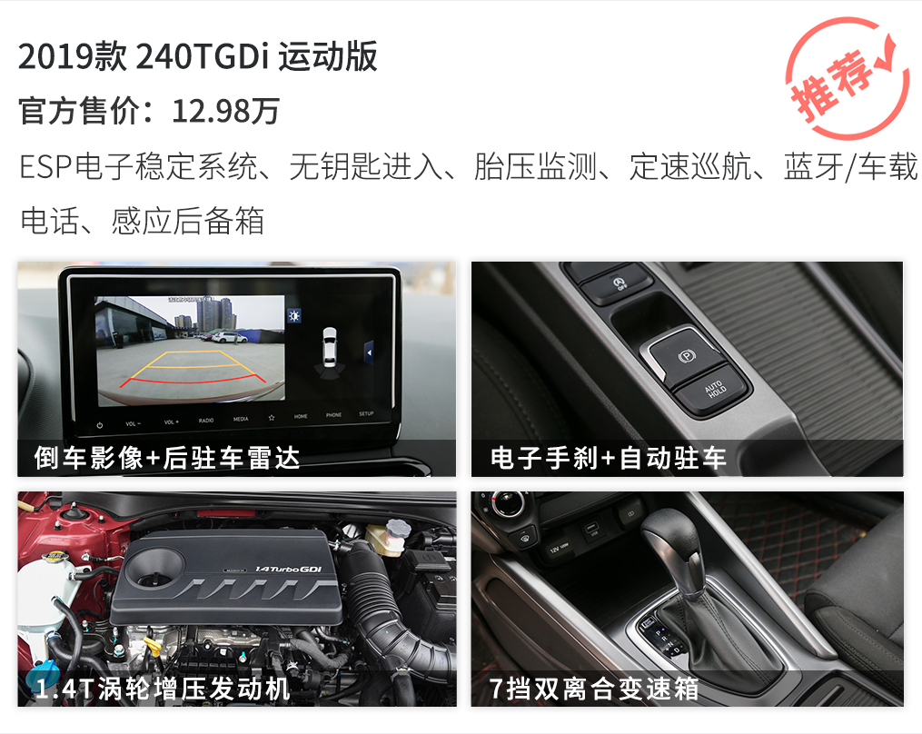 从配置看,菲斯塔入门版与高配的差别主要是动力,高配280TGDi配备1.6T发动机,而入门版240TGDi则是1.4T。虽然1.4T最大马力比1.6T低不少,但它的动力也并不差,何况油耗要低。菲斯塔入门版该有的配置基本都有,但还是更加推荐 240TGDi运动版,因为很多配置是后期无法单独加装的。