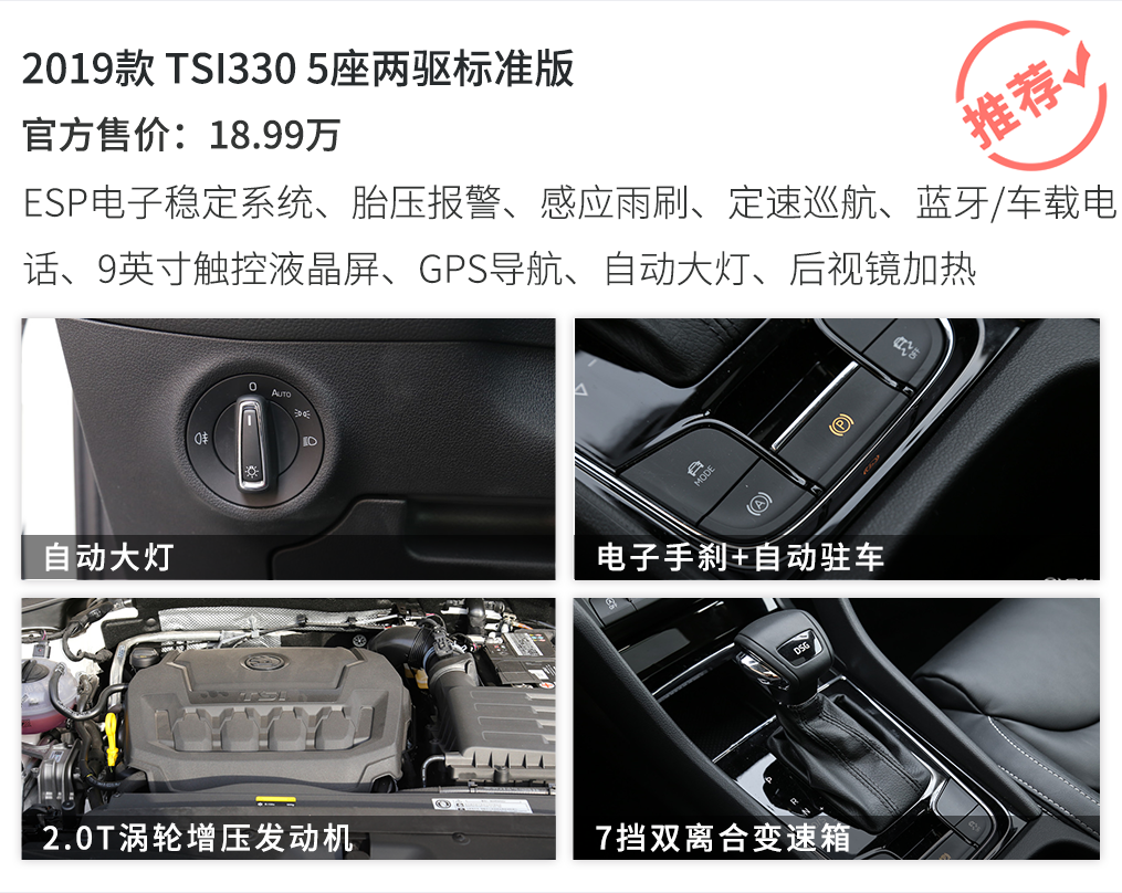 2019款柯迪亚克入门版也换装了新的2.0T发动机,这台发动机应该就是大众EA888 Gen3B,新发动机最大亮点就是加入了米勒循环,排量虽然比1.8T略大,但实际上它的燃油经济性反而会更好。柯迪亚克入门版除了手动空调外,其余配置几乎没有可以挑剔的地方,考虑到柯迪亚克更低的指导价以及较大的优惠,入门版车型性价比真的非常高。