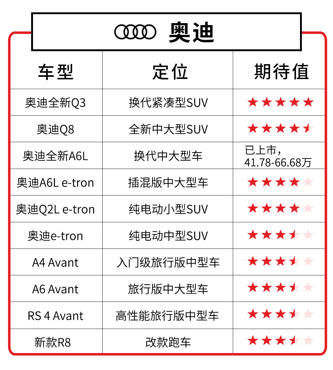 从产品来看,也能明显感觉到今年豪华品牌动作不小;新车数量庞大,特别是最受国人喜爱的豪华品牌,奥迪/宝马/奔驰更是齐发力,各自都有十多款车型要推出。选择更丰富的情况下,相信今年豪华车市场的竞争会更加激烈。