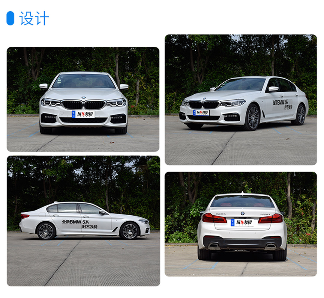 宝马5系从外表上看,造型设计的转变并不大,开眼角和多棱线,无非顺应了家族改款的步伐,不过它仍是几款车里头,在车身比例上做得最均衡得体的一员,而M运动版,则透露出不俗的性能味。