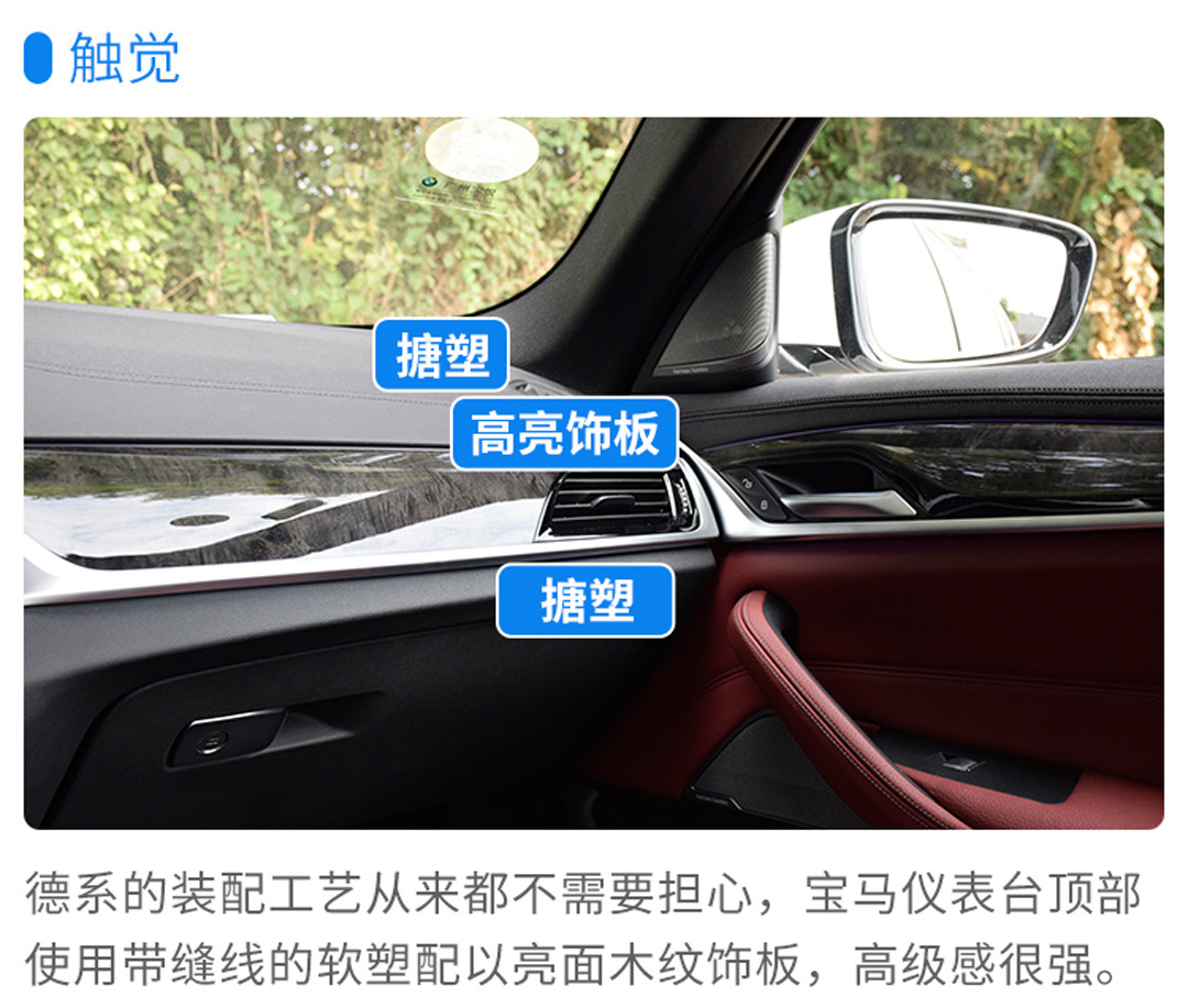 车厢内部亦然,G37与F10相比铺排和整体格局变化并不明显,不过胜在用料厚道,大部分区域在触感上要优于作为对手的奔驰E级,它不再是曾经的“别摸我”,这是一款摸起来比看起来更让人惊喜的5系。