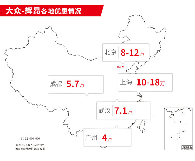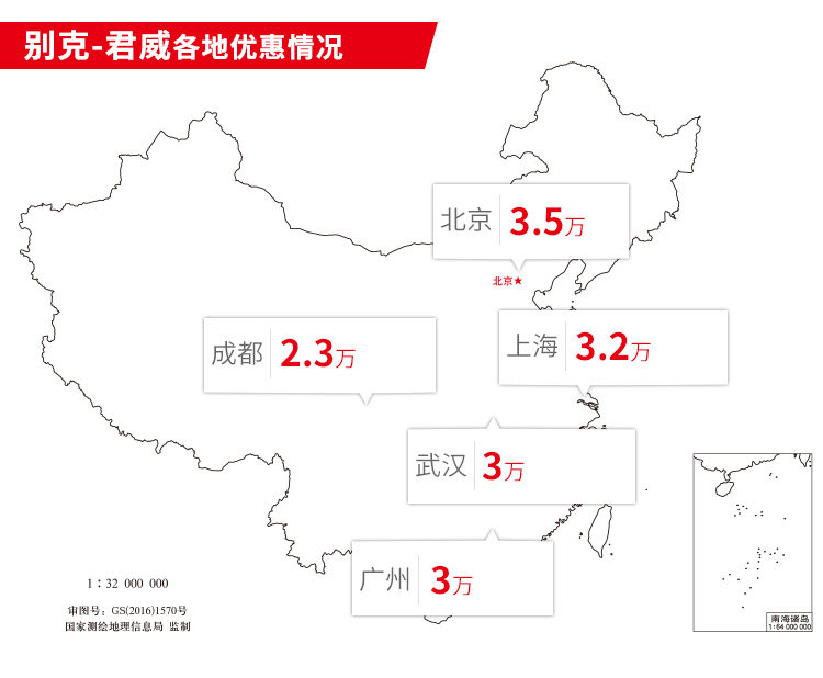 优惠详情:君威在全国范围内的优惠幅度保持得较为一致,且包含北京、上海、广州、武汉、成都等多个城市均是以直接放出现金的形式进行优惠,无需强制搭配其他消费项。
