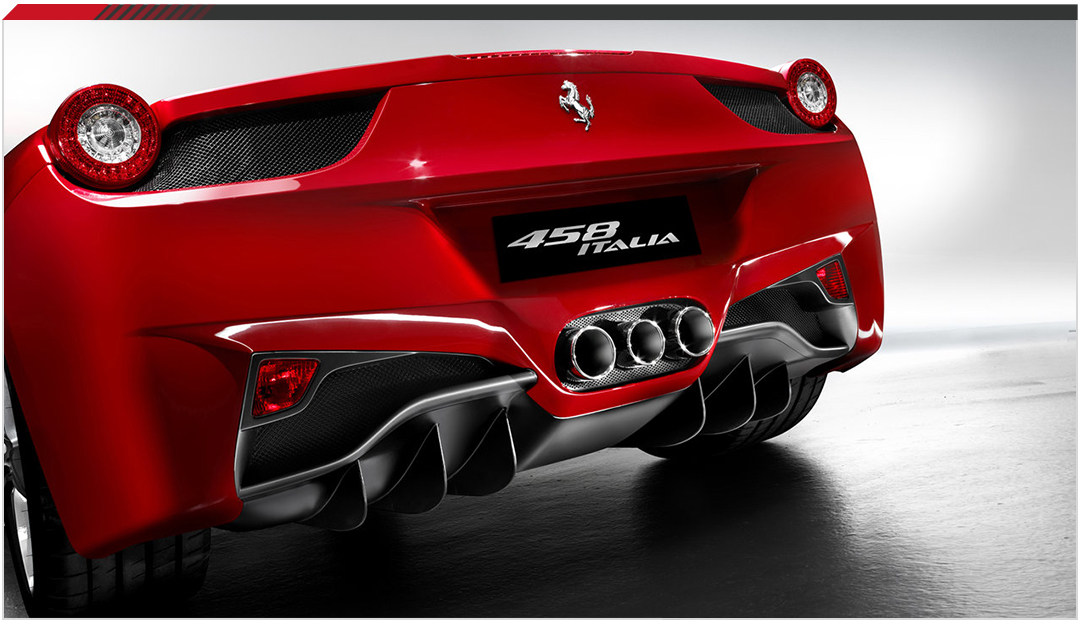 这个其实算一个车迷必须知道的豆知识,458 Italia其实是有四条排气的,不过法拉利让其中两条凑在一起通往直径较小的中央位置。怎么样,是不是能联想到F40上兼任涡轮泄压阀出气口的中置排气?