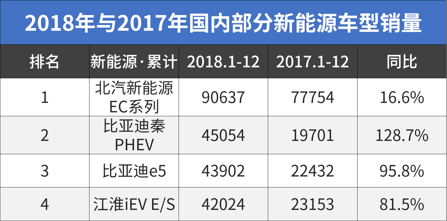 而在前10款车型的榜单中,我们可以轻易的发现自主品牌车型的许多身影。其中,有北汽新能源EC系列、比亚迪秦 PHEV、江淮IEV E/S、比亚迪e5四款车型入榜。不同于特斯拉品牌车型,由于特殊的国内汽车市场环境,自主品牌新能源车型,大部分都是在国内销售居多。并且由于补贴原因和区域限制问题,不同程度的刺激了销量的增长。但这4款车型热销新能源车型,产品力是否可圈可点呢?