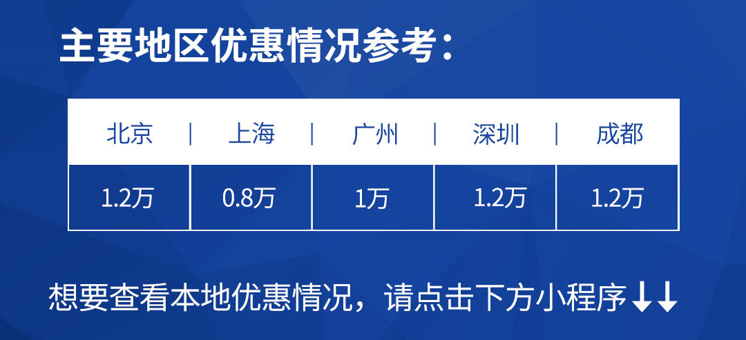 优惠详情:北京只需要在店内上保险,上海、广州、成都地区为现金优惠,深圳地区需加装饰、店内上保险、店内贷款。