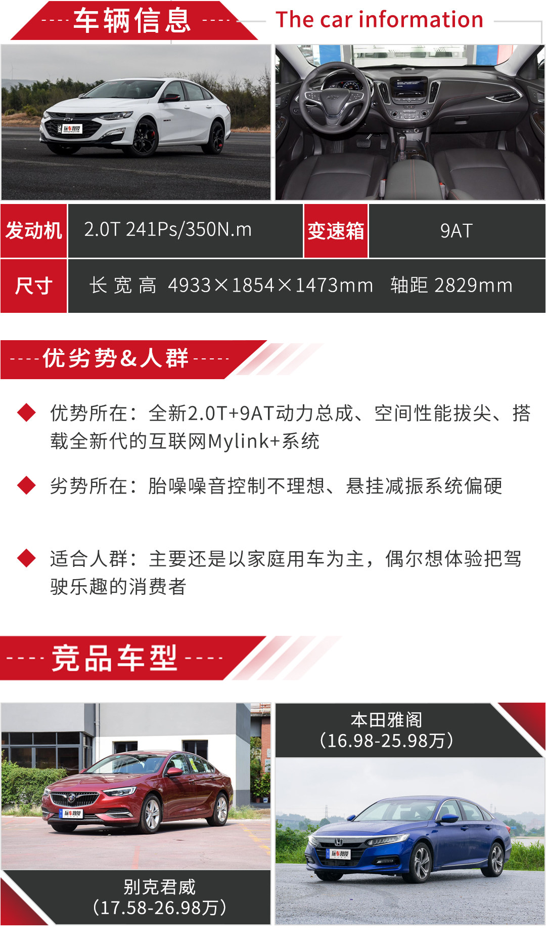 教授点评:全系迈锐宝XL在去年年末完成上市,对比上代车型,新车的颜值设计前卫且大胆,不仅拥有很高的辨识度,还相当的有视觉冲击力。与此同时,新车的内饰也进行了相应的升级改造,运动感表现力极强,而且做工以及用料的选择也是讲究了很多,给人的质感体验有明显的提升。不过要说全新迈锐宝XL给人的最大惊喜,那还得是它所搭载的那套互联网Mylink+系统和2.0T智能变缸涡轮增压发动机+9AT动力总成,两者相互结合,给予消费者既有优秀动力输出又能保证良好燃油经济性的智能化用车体验,当然了,最为重要的是这套动力总成是符合国六排放标准的。