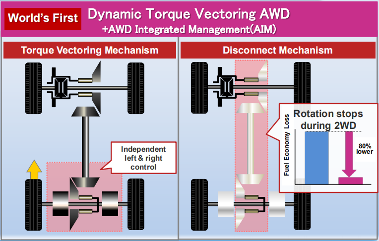 扭矩矢量控制四驱有几个亮点,在经济模式下可以完全断开前后桥之间的传动轴,这就避免了两驱模式下传动轴空转造成的动力损失,从而提升燃油经济性。另一个亮点就是,它可以单独分配后桥左右侧车轮的扭矩,操控或者越野性能都有一定提升。