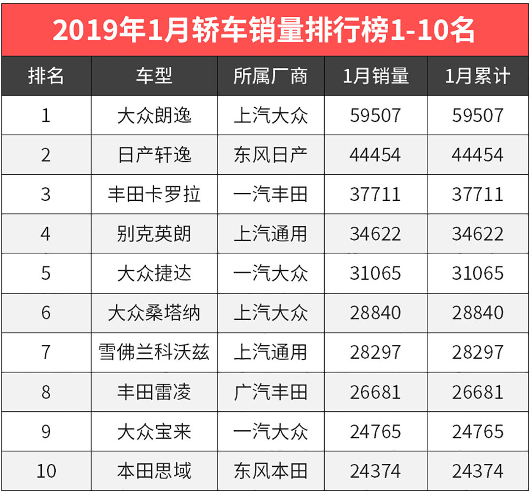 2019年1月份的销量已经出炉,看看最多人买的轿车都有哪些?